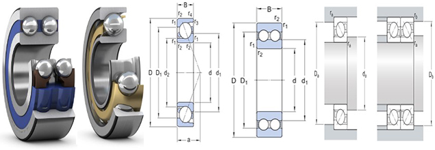 两侧带有密封的双列角接触球轴承在设计和运行方面对应于背对背配对的两个单列角接触球轴承,但所占用的轴向空间更小。 根据密封配置,可在高速下运行,比深沟球轴承更能承受双向较大轴向力。